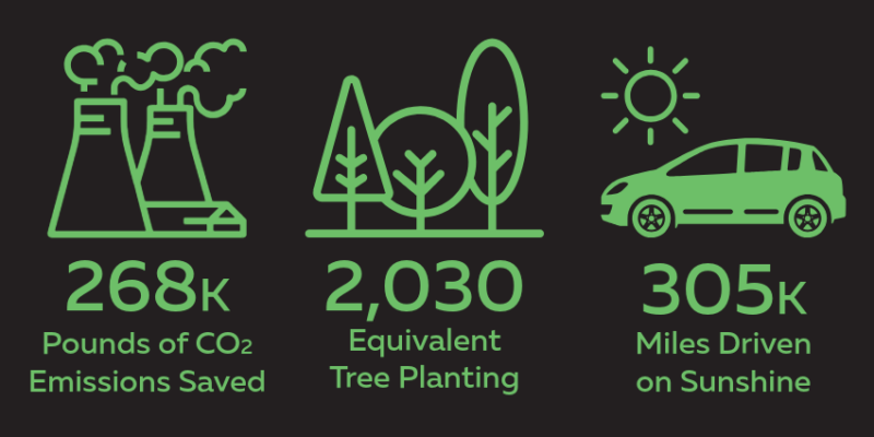 Our work exists because of the environment, so protecting and restoring it is foundational to everything we do. Since 2021, our headquarters has been fully powered by solar energy—generating more clean electricity than we use and producing over 168 MWh to date (roughly equivalent to the annual energy use of about 15 average U.S. homes). That same renewable energy powers our battery-operated horticulture equipment, eliminating emissions, reducing noise, and improving working conditions for our team.