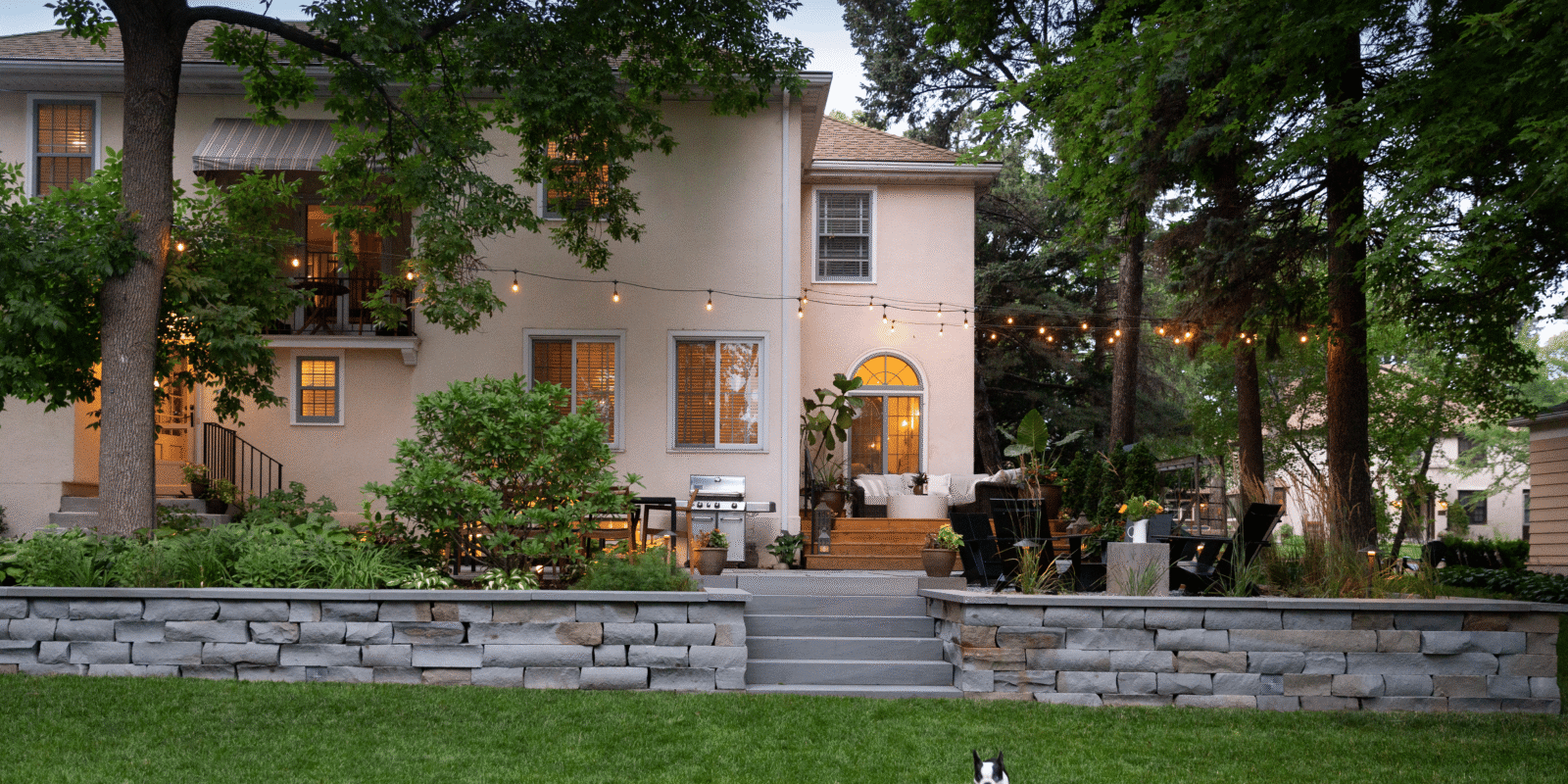 Outdoor activities can happen at home when you have a family friendly yard. Open space for the kids and dogs with gathering spaces for family meals and story telling around the wood-burning firepit.